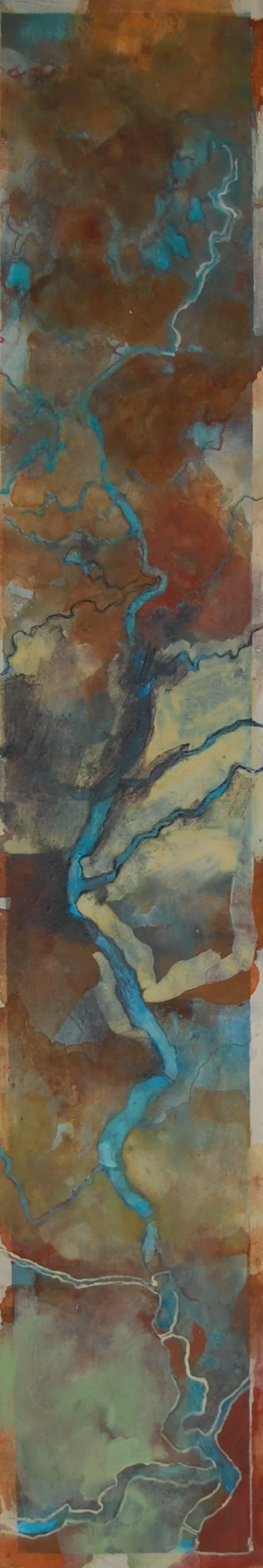 Untitled I and II, recently exhibited at Council Member Amy Brendmoen's Office, started as two rough scraps of Masonite. Two scraps that I slapped with a layer of gesso and then set aside. Fortunately, the urge to throw out the things in my studio was just that. Nearly a year later I found my self drawn to a unique old book that had a pull out map of the Mississippi River. It was then that my tireless devotion to hoarding paid off. Idea met medium. The Masonite proved to be the perfect dimensions to recreate the vintage illustration in my 1891 copy of Down the Great River; An Account of the Discovery of the True Source of the Mississippi.