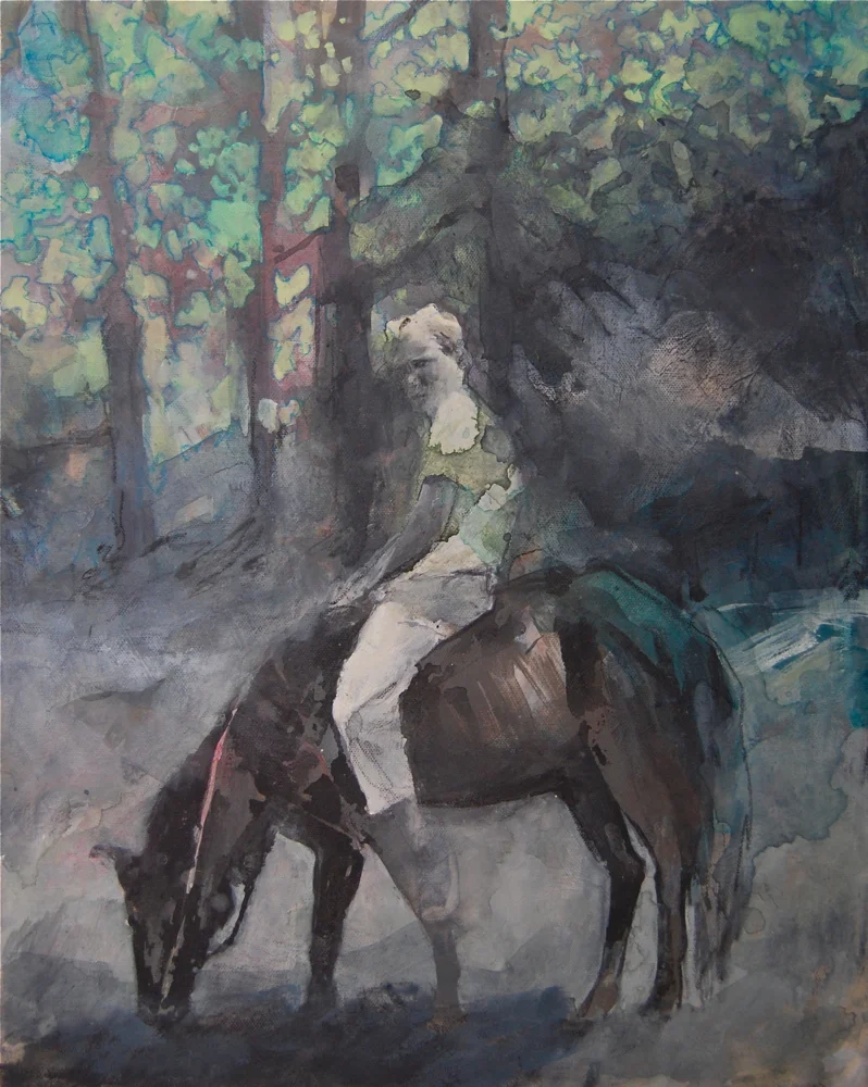 I am excited to add three new paintings to my North End series! This series involves using vintage photographs I've inherited as the source material. This formula always proves to be a challenging one. As much as I want to focus on the composition and not create a likeness to figure in the photo, the challenge is always too tempting. I find myself painting and repainting the minute details of the facial features for each project in the series. I am however, very happy with the likenesses with each piece, as well as their composition! The three new works were made in succession of one another and subsequently have a connecting color palette, style, and tone. All three also have a subject matter where I feel the person's imagination at work. Whether riding a horse, a-float on a dingy, or about to fly through the neighborhood on a bicycle, there is a sense of freedom and open possibilities with each scenario. I am happy to introduce my three new pieces in this series: Kick Stand, Rider, and Open Water!