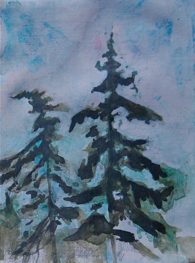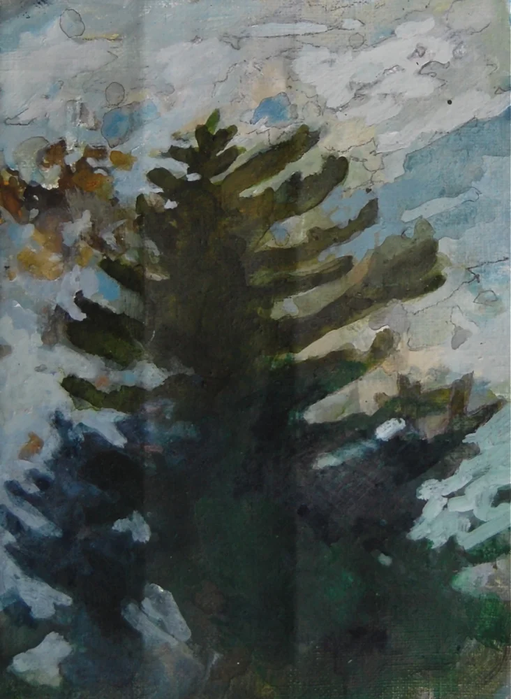 Sketches in Line and Sky is a collection developed from sketching directly from nature on to a series of artist’s linen. My intention for these paintings is to document the emotional experience I have being in nature. Each work starts with a field drawing done in pencil. That outline is then accentuated as I build up layers of color in an attempt to illustrate the full atmosphere of the landscape.